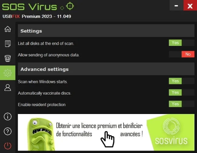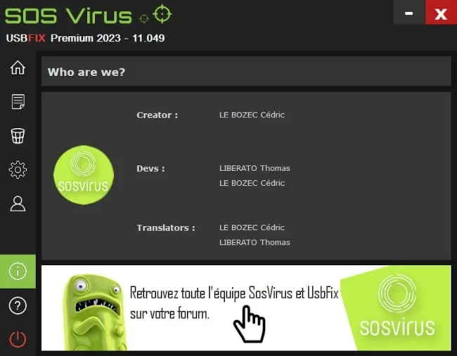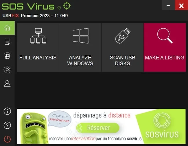 USBFix a été développé par SOSVirus spécifiquement pour lutter contre les virus de raccourcis se propageant via les supports USB. Cet outil bloque les infections d'ordinateur à ordinateur, restaure les fonctions endommagées de sécurité, de registre et de gestionnaire de tâches, masque les fichiers, etc. De plus, il est constamment mis à jour et vous informe de toute nouvelle menace. Il propose une assistance technique en ligne avec des experts compétents pour répondre à vos questions.